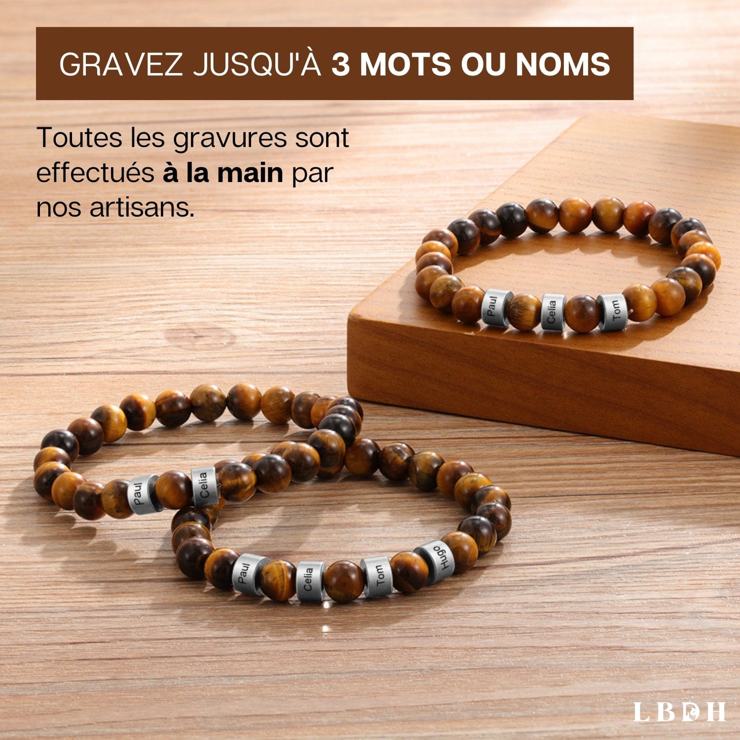 Idéal comme cadeau homme personnalisé, ce bracelet pierres naturelles gravé marque les moments importants : anniversaire, fête des pères, graduation, ou pour créer un bijou unique chargé de sens et d'énergie positive